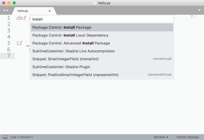 import urllib.request,os;pf='Package Control.sublime-package';ipp=sublime.installed_packages_path();urllib.request.install_opener(urllib.request.build_opener(urllib.request.ProxyHandler()));open(os.path.join(ipp,pf),'wb').write(urllib.request.urlopen('http://sublime.wbond.net/'+pf.replace(' ','%20')).read())- Sublime 2